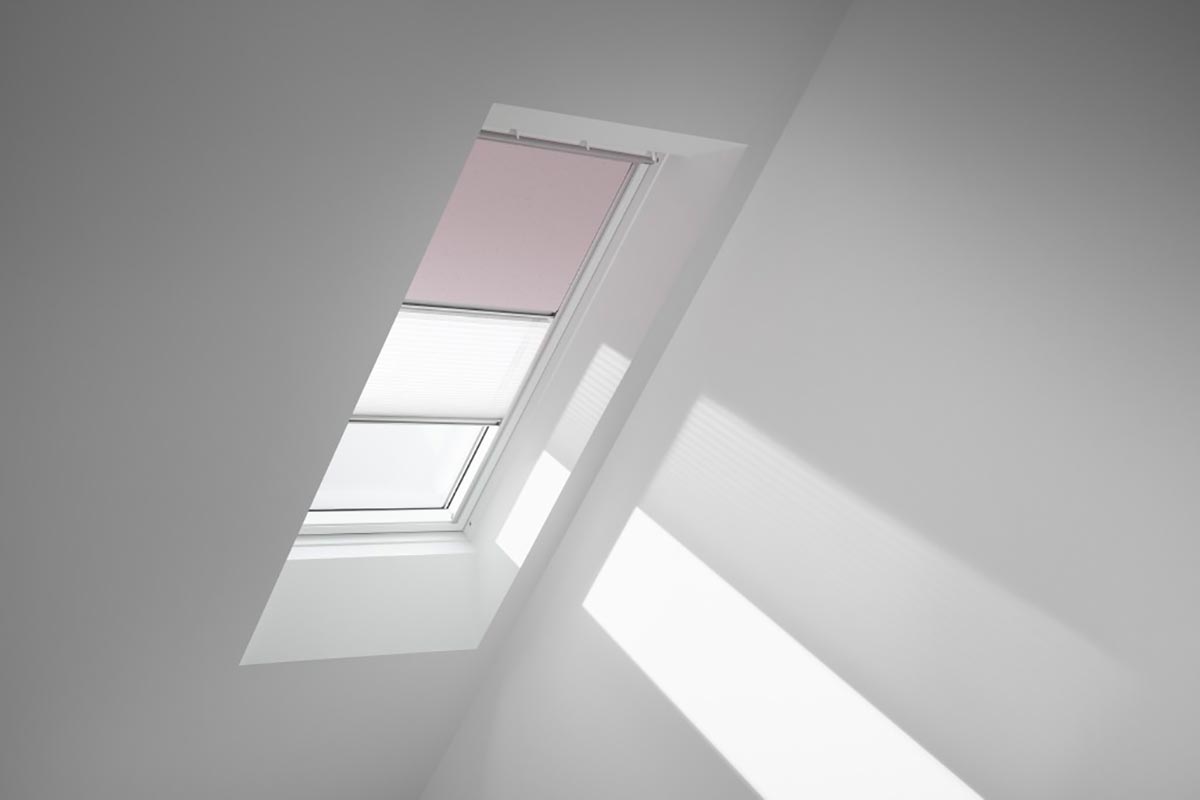 Bei der neuen Farbkollektion können verdunkelnde und transparente Dekore individuell miteinander kombiniert werden. Und dank der neuen, weißen Seitenschienen wirken VELUX Rollos und Plissees im Dachfenster besonders dezent, beinahe nicht sichtbar.